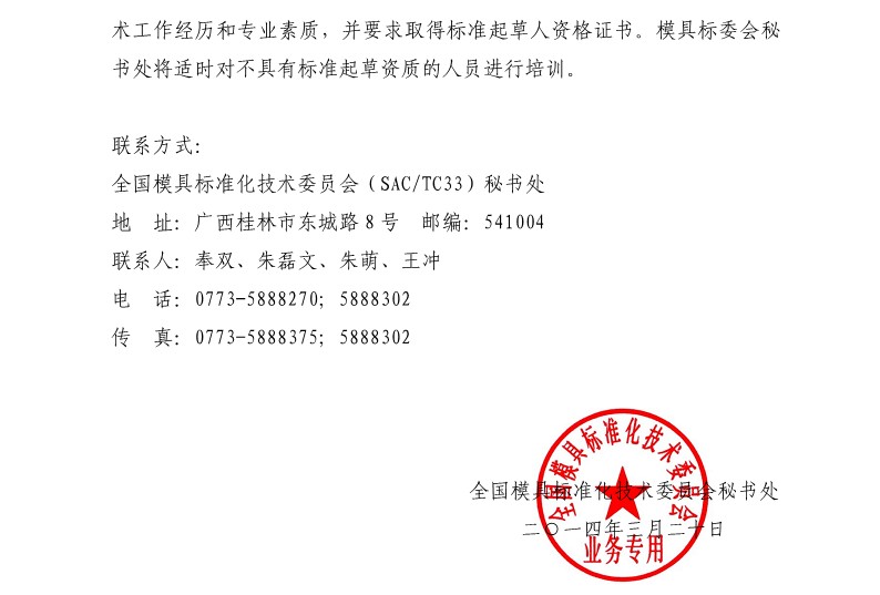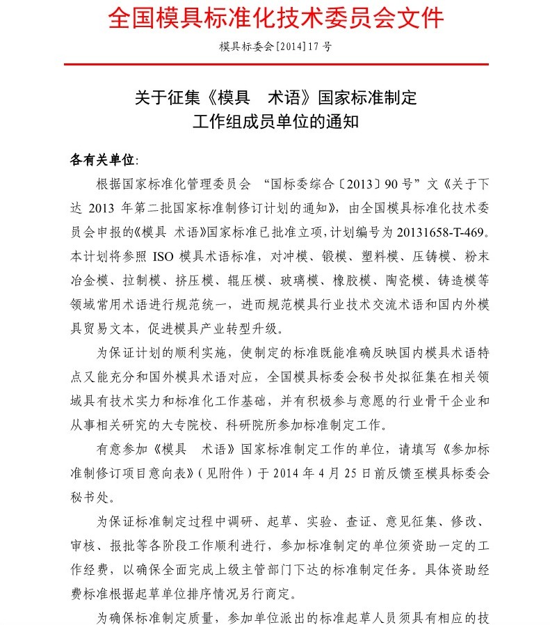 关于征集《模具 术语》国家标准制定工作组成员单位的通知