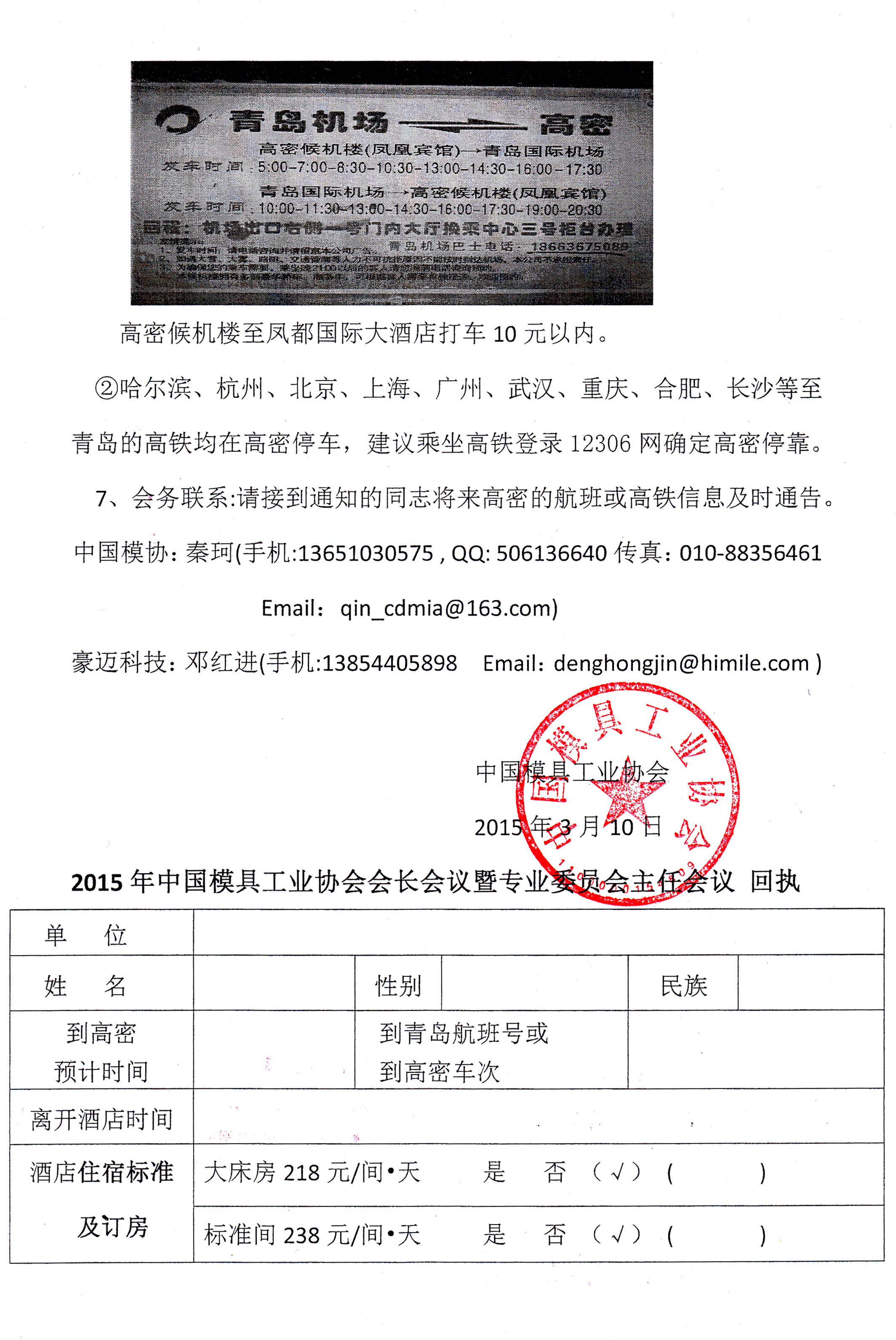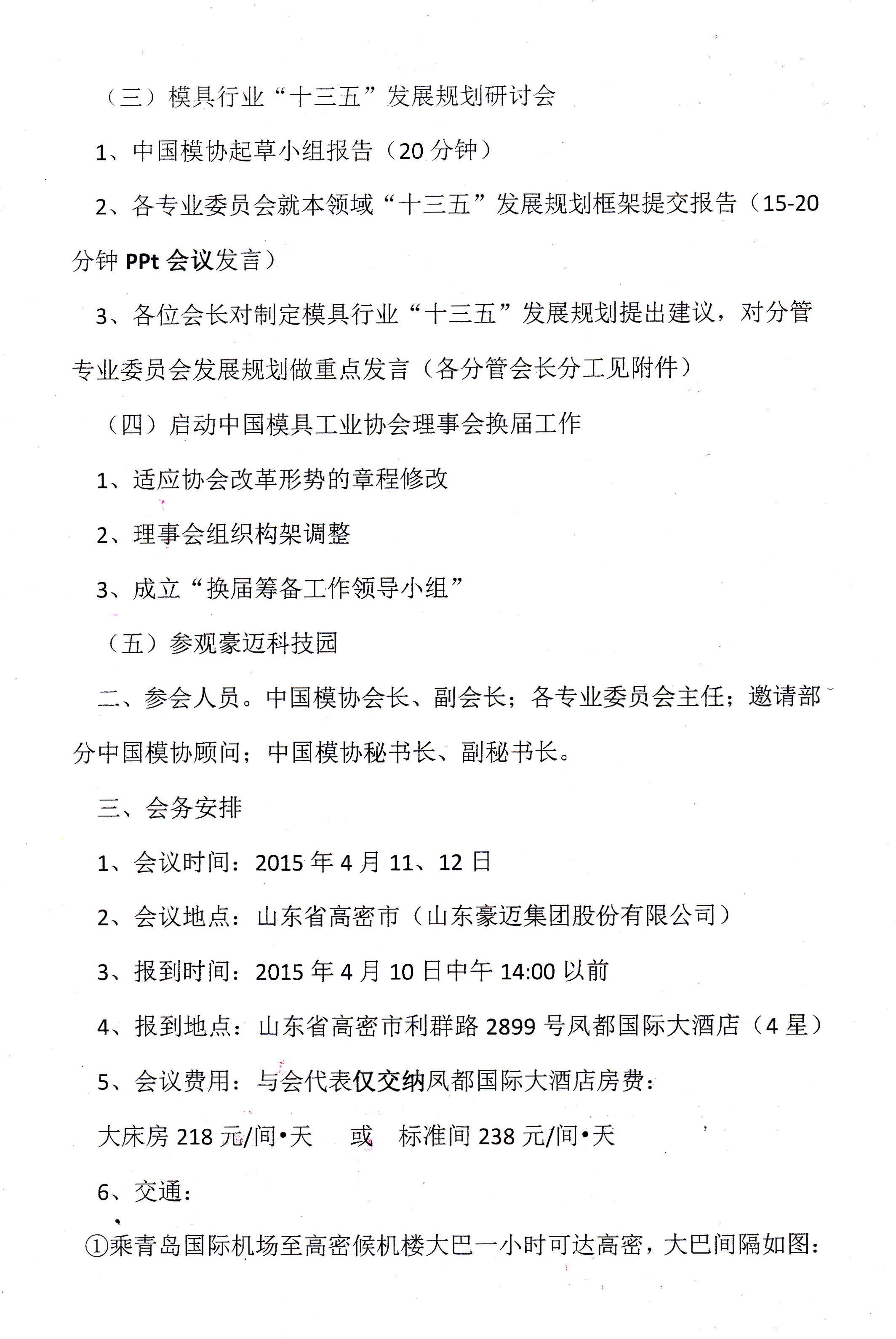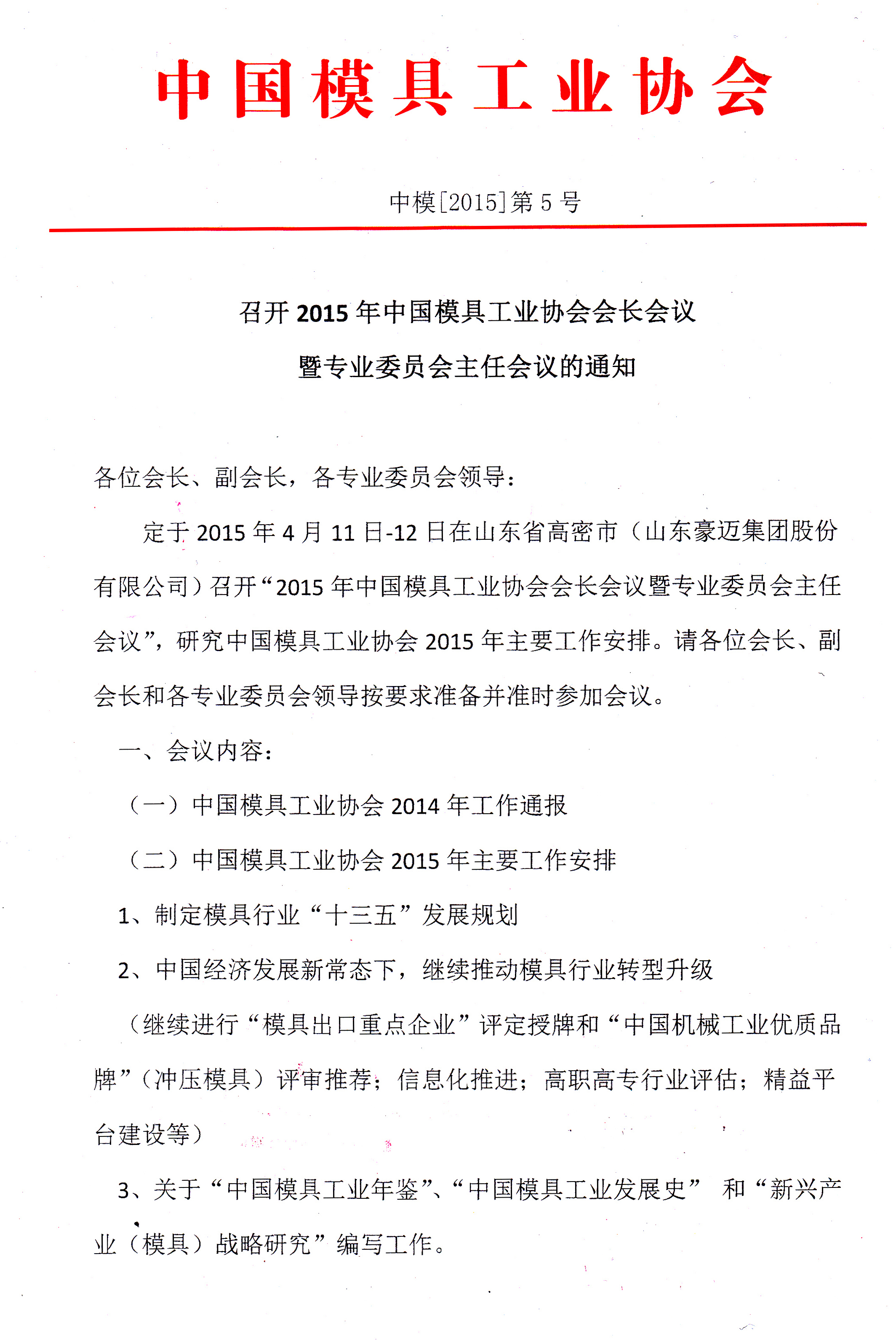 召开2015年中国模具工业协会会长会议暨专业委员会主任会议的通知