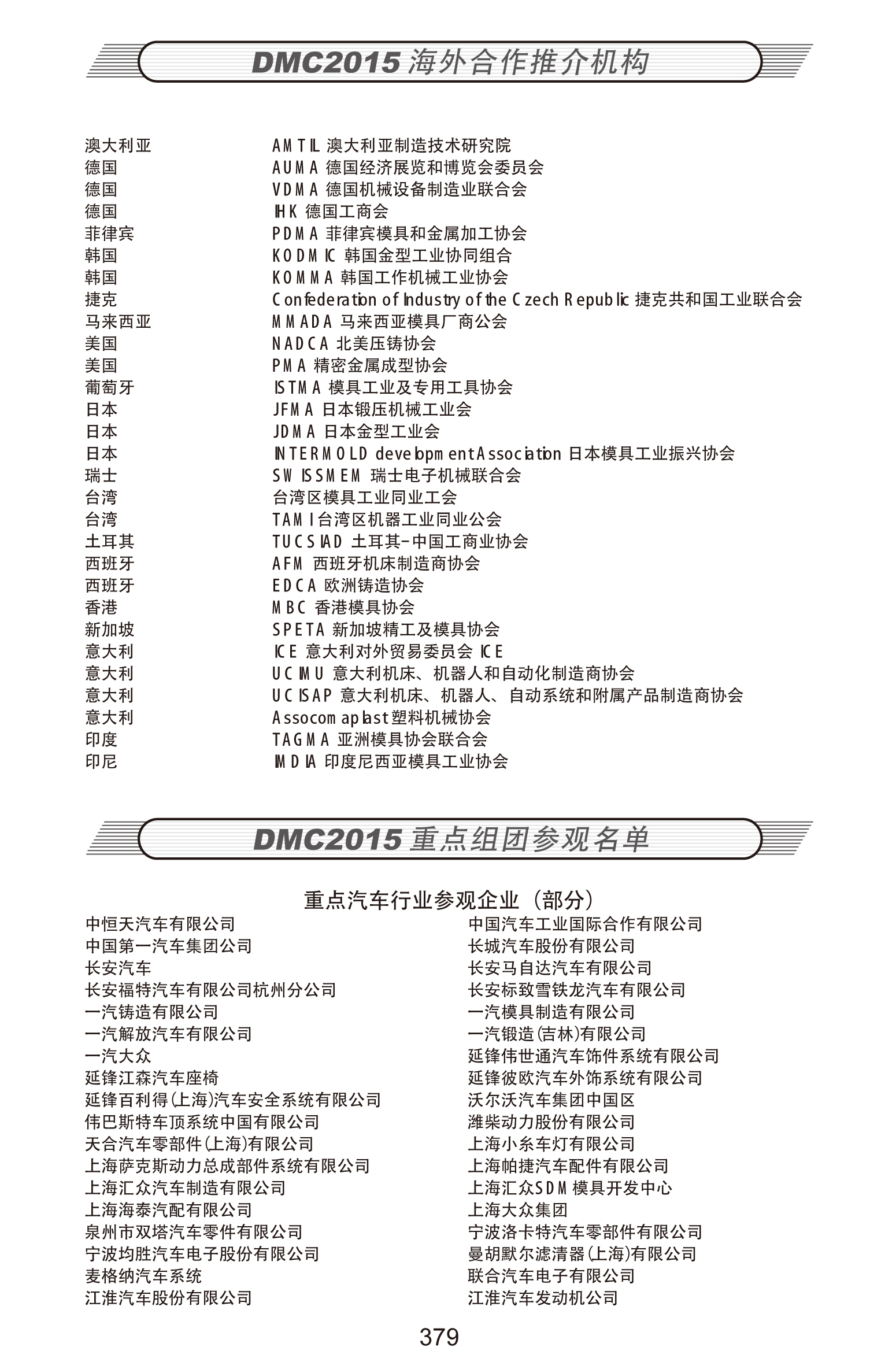 DMC2015海外合作推介机构、重点组团参观名单
