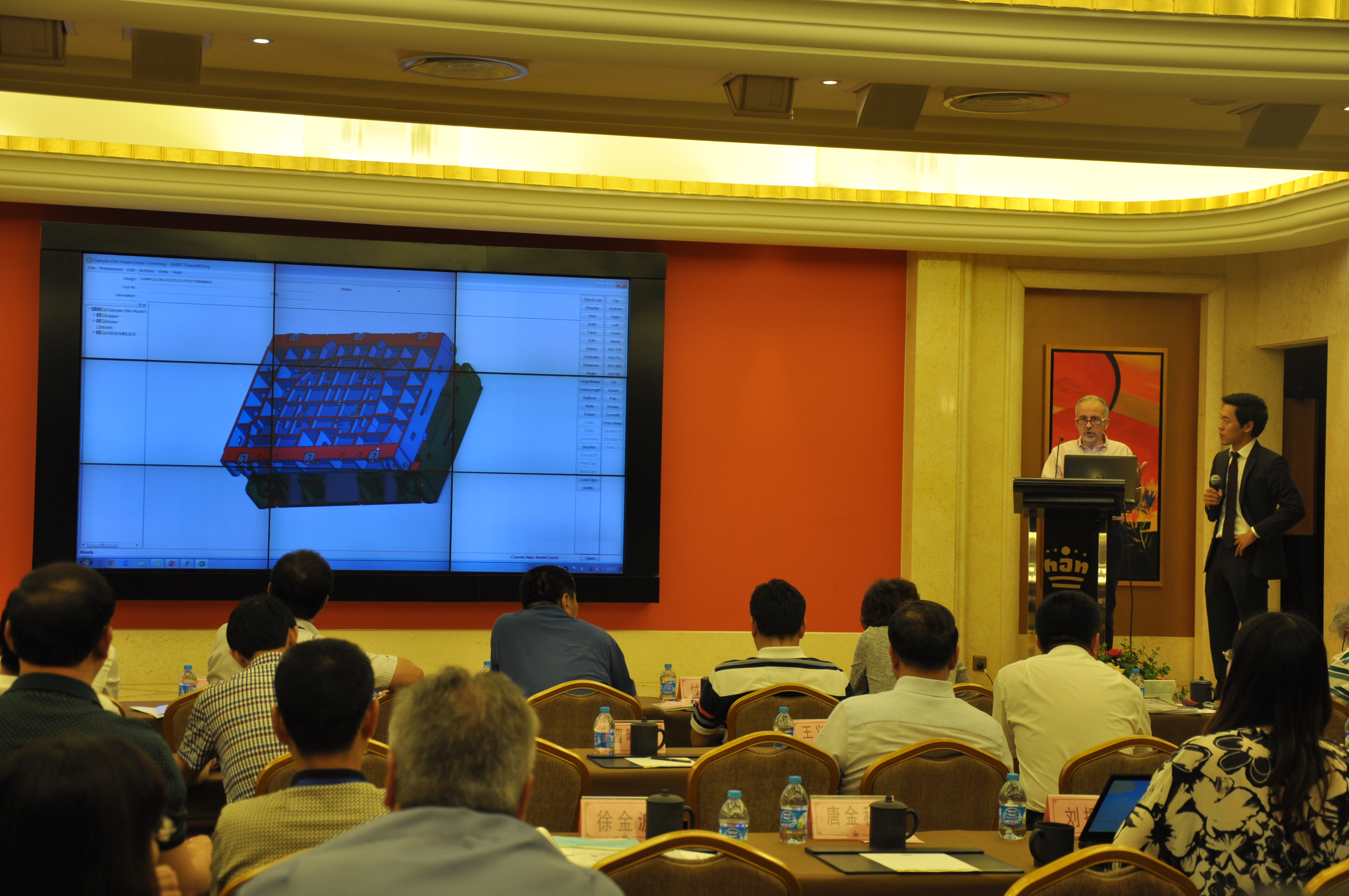 工业4.0下汽车模具技术交流和研讨会由汽模委秘书邢忠宪主持,华中科技大学柳玉起教授做了汽车覆盖件智能化设计与成形模拟的技术报告;加拿大FTI公司全球副总裁麦克做了覆盖件工艺工程革新:全球领先的工程和成本策略和解决方案的技术报告;美国ETA公司徐金波经理做了仿真分析中热成形中的应用的技术报告;CAXA数码大方的杨维明副总经理做了模具行业精益研发创新服务平台的技术报告;美国SMIRT WERE INC 公司 Mr. Cosimo Galante工业顾问做了为冲压模具制造量身定制的软件方案的技术报告。来自中国,美国,加拿大的各位专家针对汽车冲压模具的技术、设计、制造、成本控制、等一系列问题的解决方案,以及精益研发创新平台等精彩精辟的演讲,使大家受益匪浅,实时掌握国际汽车模具技术的新动态、新观念、新方法、新思维、新技术。