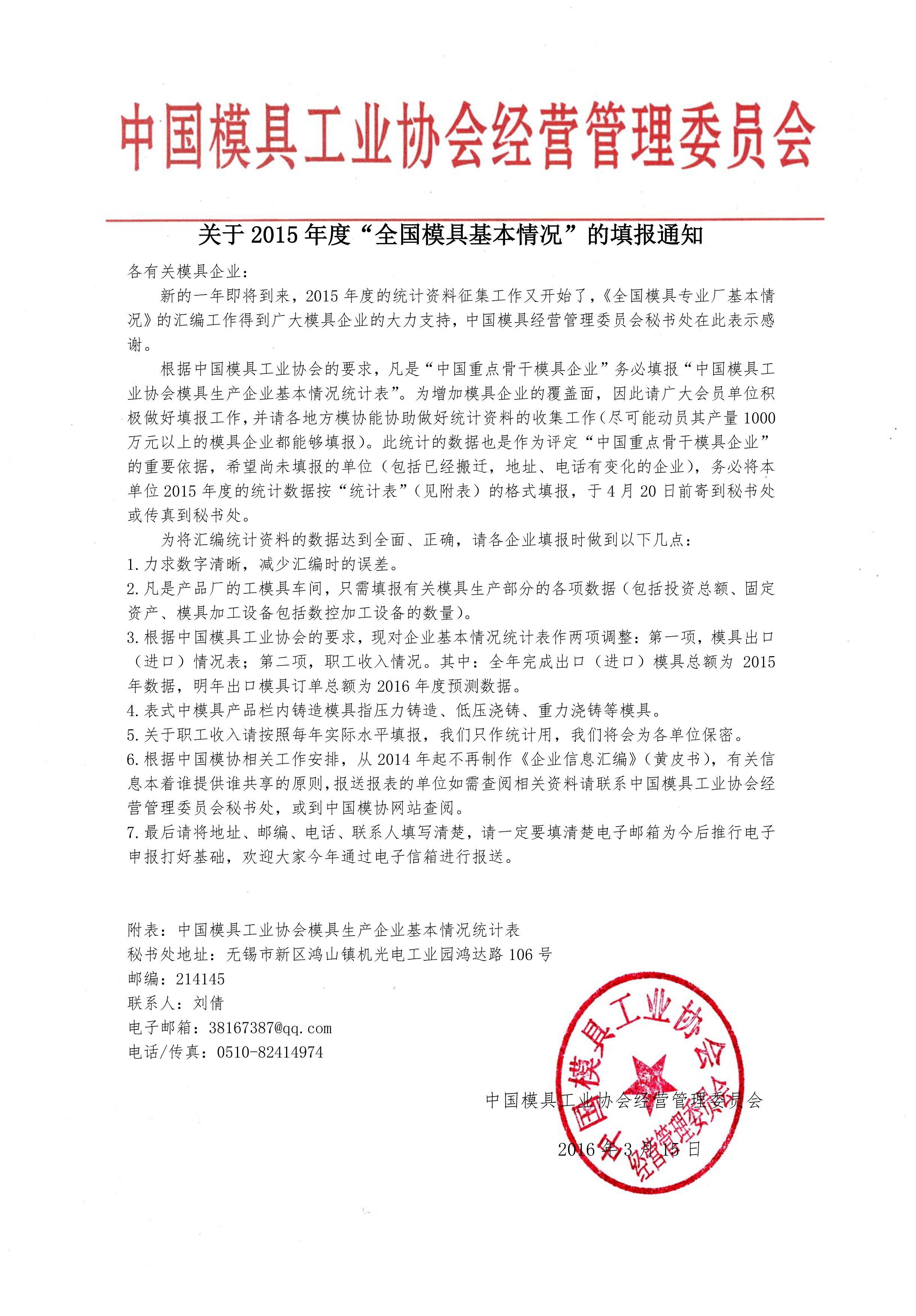 中国模具工业协会2015年度模具生产企业基本情况统计表.doc