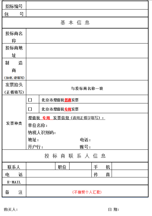 3、标书款发票将以投标商填写的发票信息为准开票,发票开出不退不换;