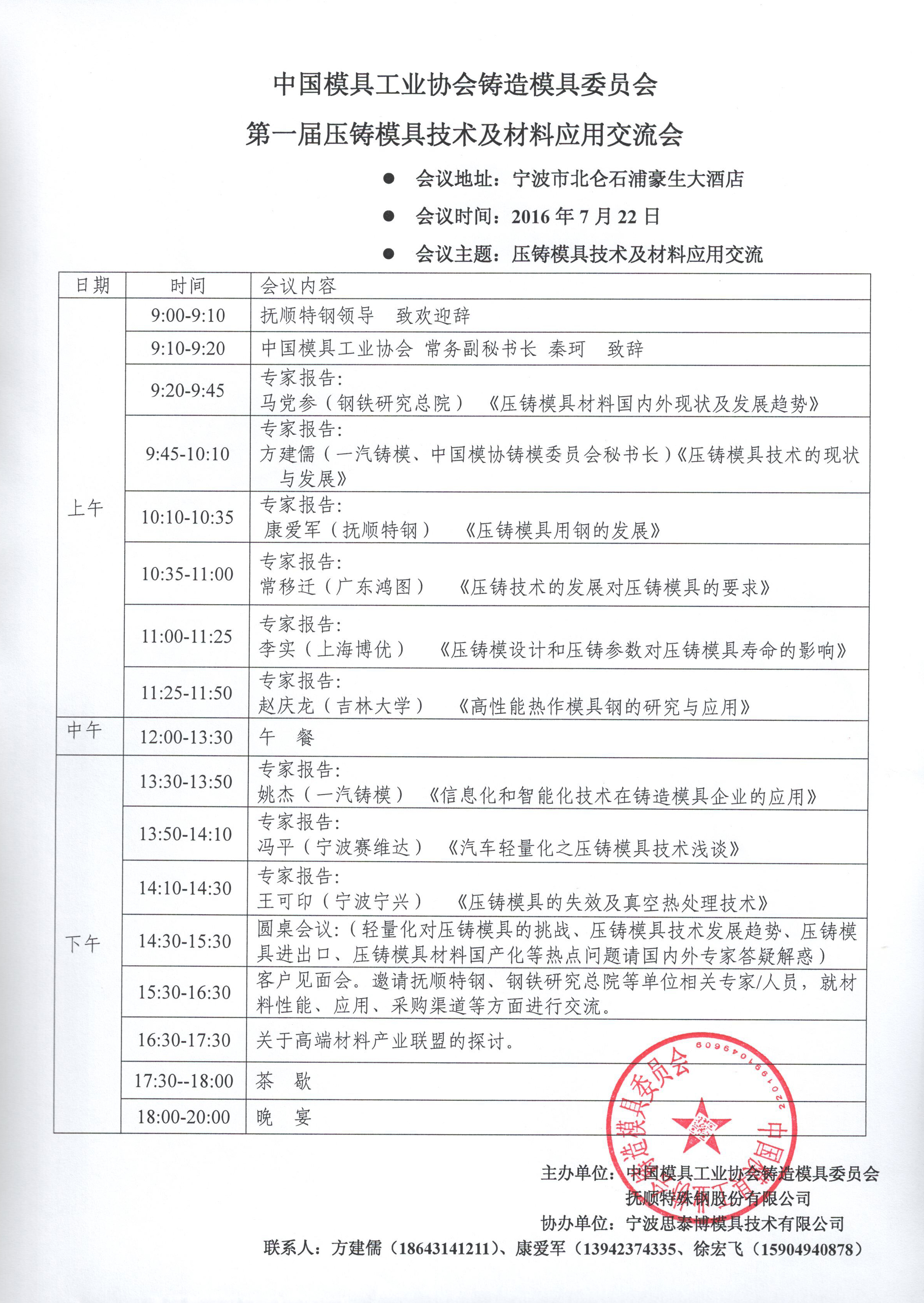 中国模具工业协会铸造模具委员会第一届压铸模具技术及材料应用交流会