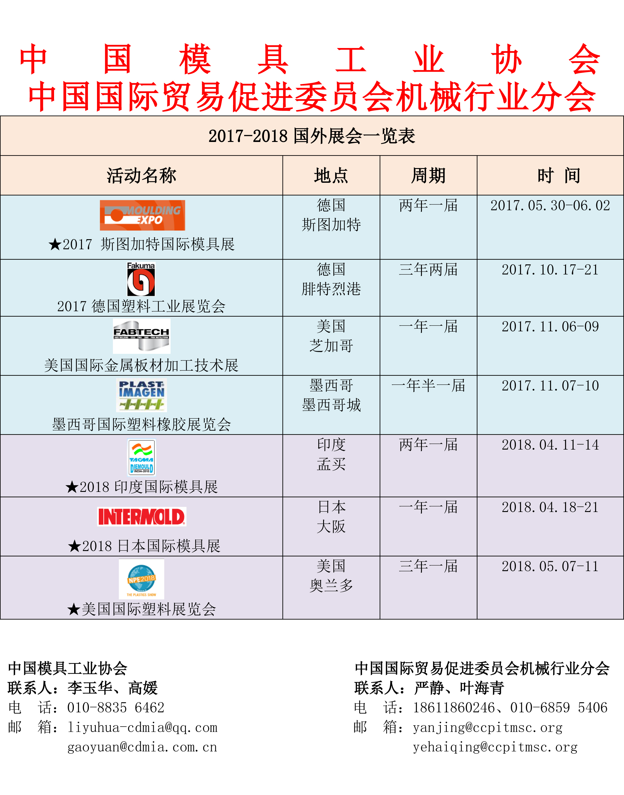 2017-2018国外展会一览表