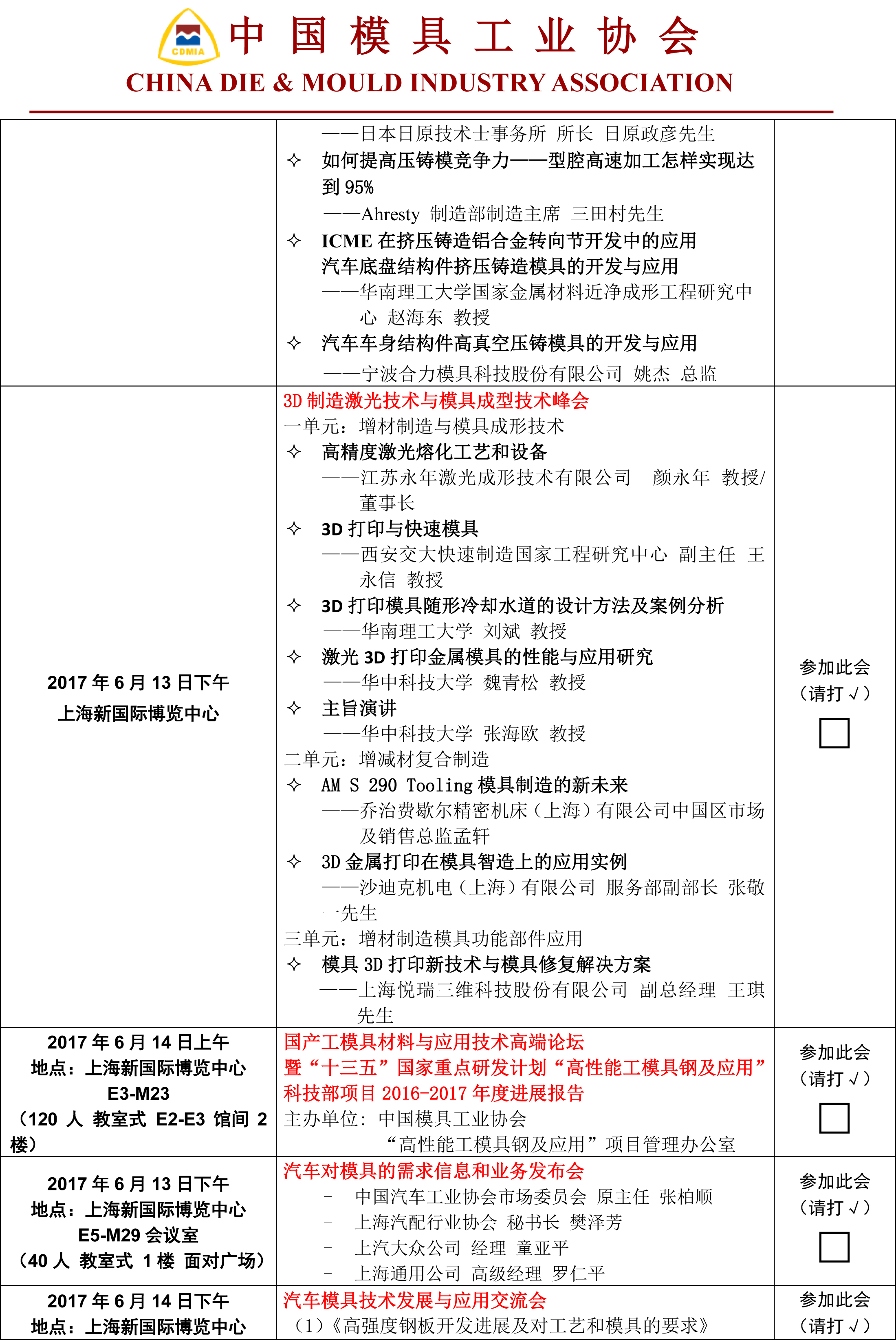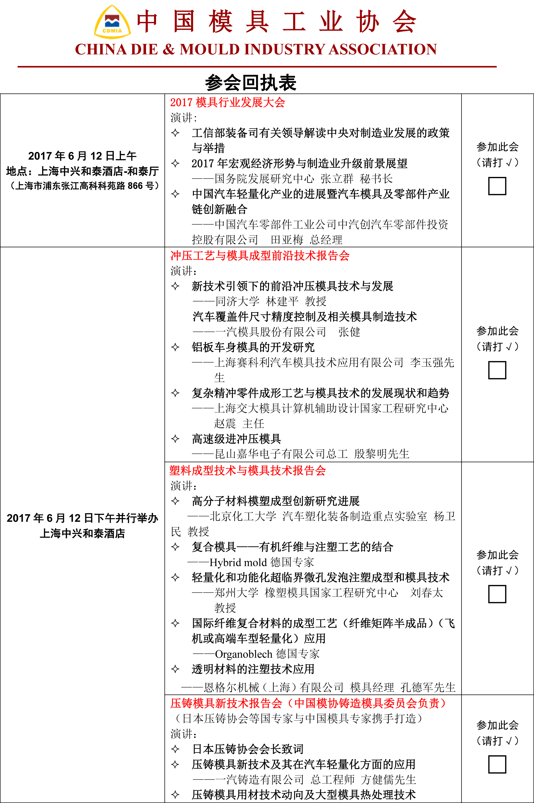 DMC2017同期活动参会回执表
