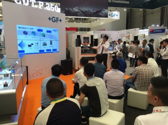 GF 加工方案带来了面向中国市场推出的全新CUT P 精密慢走丝线切割机床系列,该系列在工艺智能性全面得到了提升,在SMART 智能加工模块和互连解决方案方面,它将提高用户的生产力和最大化机床的工作时间;FANUC带来的的放大镜注塑自动化系统