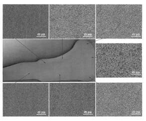 我国也采用K3和GH4698作为模具材料,探索近等温锻和热模锻工艺生产GH4169合金盘件。钢铁研究总院、宝山钢铁股份有限公司、中国第二重型工业集团公司联合攻关,利用热模锻技术生产出尺寸精化、组织均匀、性能优异的GH4169压气机盘。图3为热模锻GH4169合金压气机盘晶粒度分布:与普通模锻工艺相比,热模锻盘件节约原材料20%,冷模组织厚度小于5mm,轮缘不同部位持久蠕变性能波动更小。
