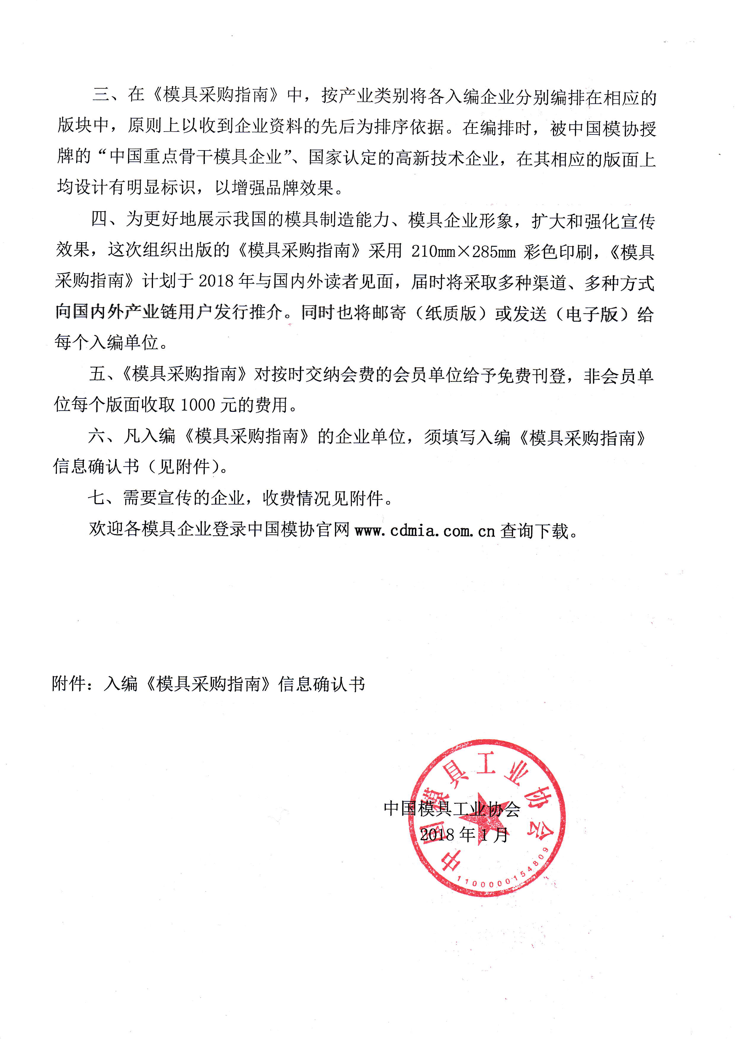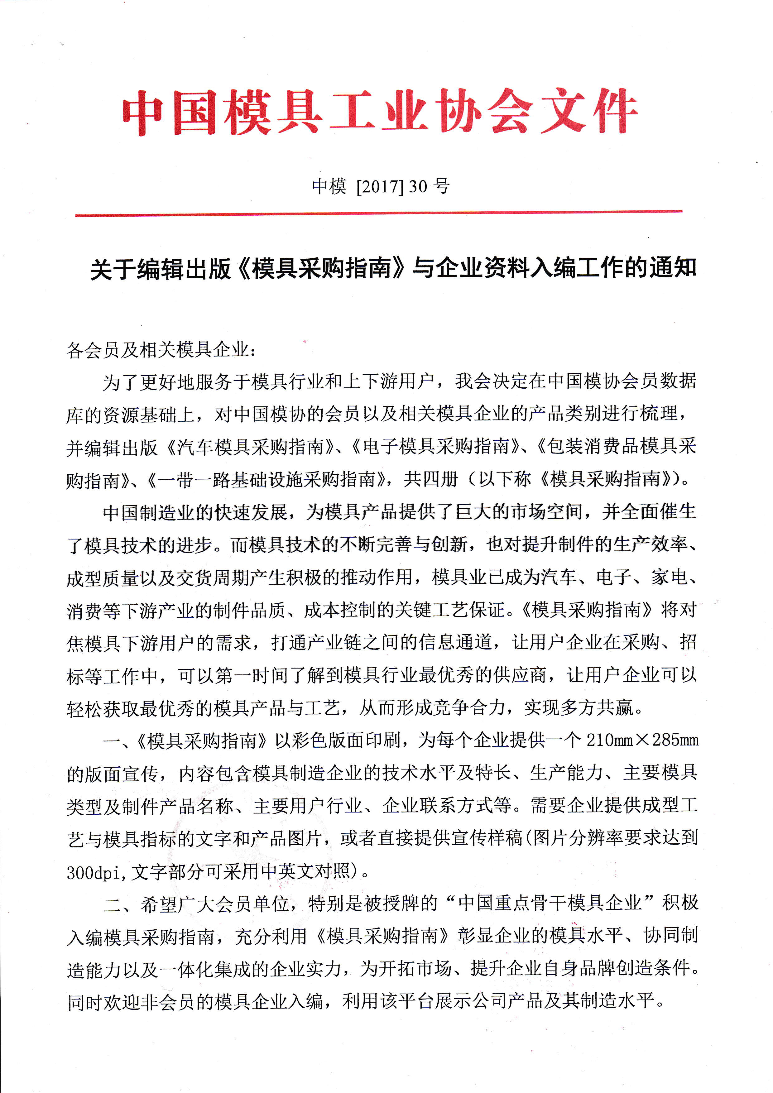 关于编辑出版《模具采购指南》与企业资料入编工作的通知