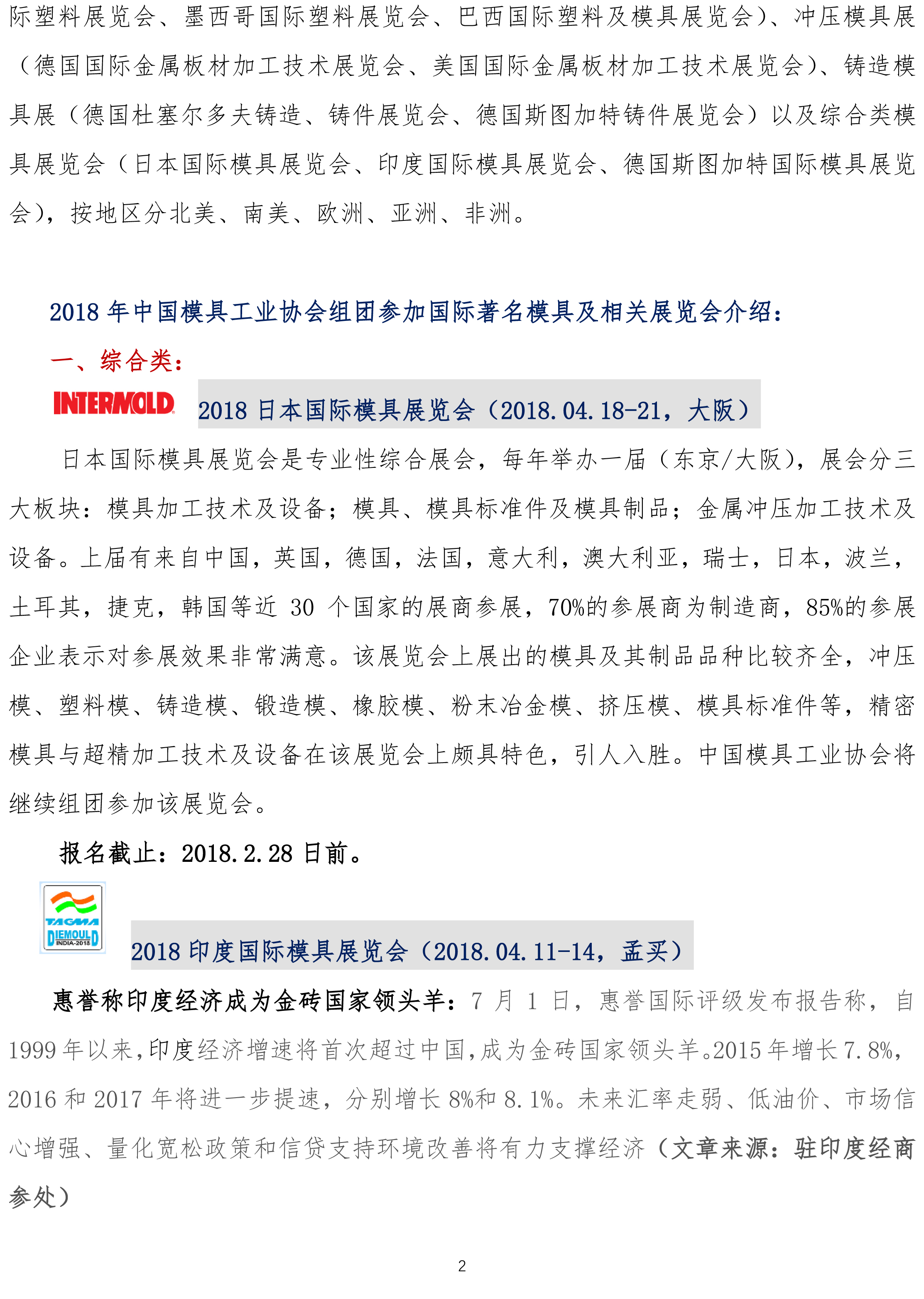2018年中国模具工业协会组团参加国际著名模具及相关展览会介绍