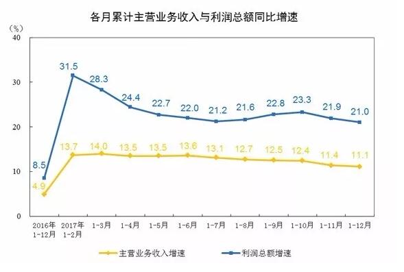 总体看,2017年工业利润实现快速增长,主要得益于供给侧结构性改革的深入推进,去产能、降成本等政策措施有效落实,新动能加快成长,结构调整、转型升级步伐加快,企业生产经营环境得到明显改善。下阶段,要继续坚定不移深化供给侧结构性改革,坚定不移加快工业领域新经济发展壮大,稳步实现工业经济从高速发展向高质量发展的转变。