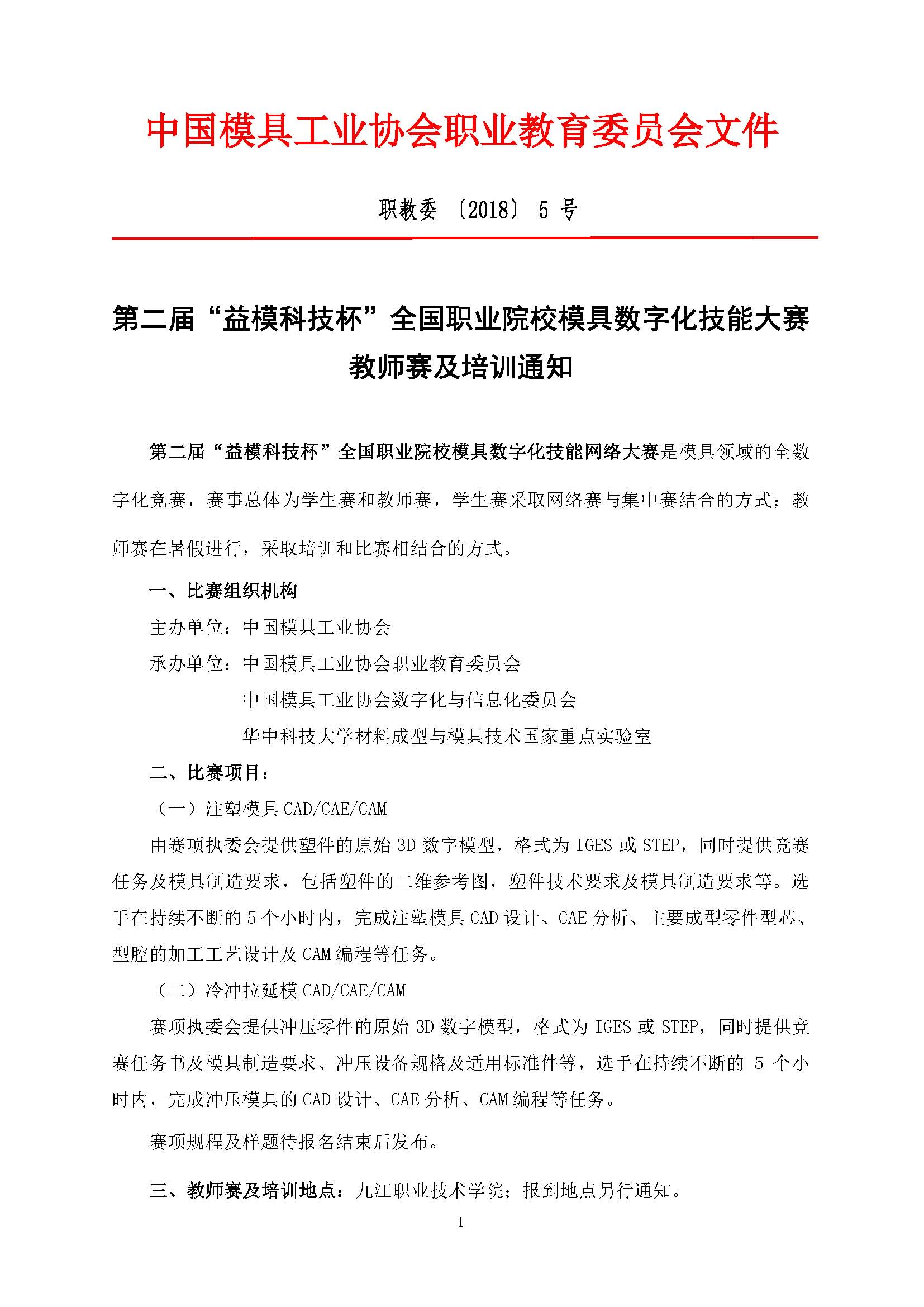 第二届“益模科技杯”全国职业院校模具数字化技能大赛教师赛及培训通知