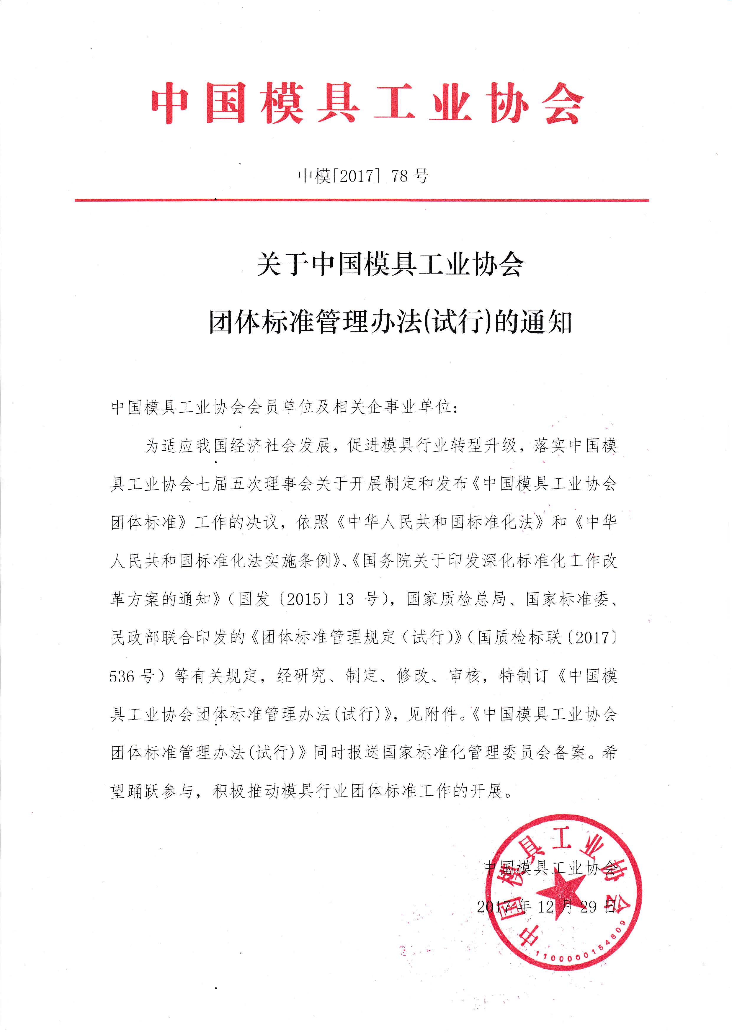 关于中国模具工业协会团体标准管理办法(试行)的通知