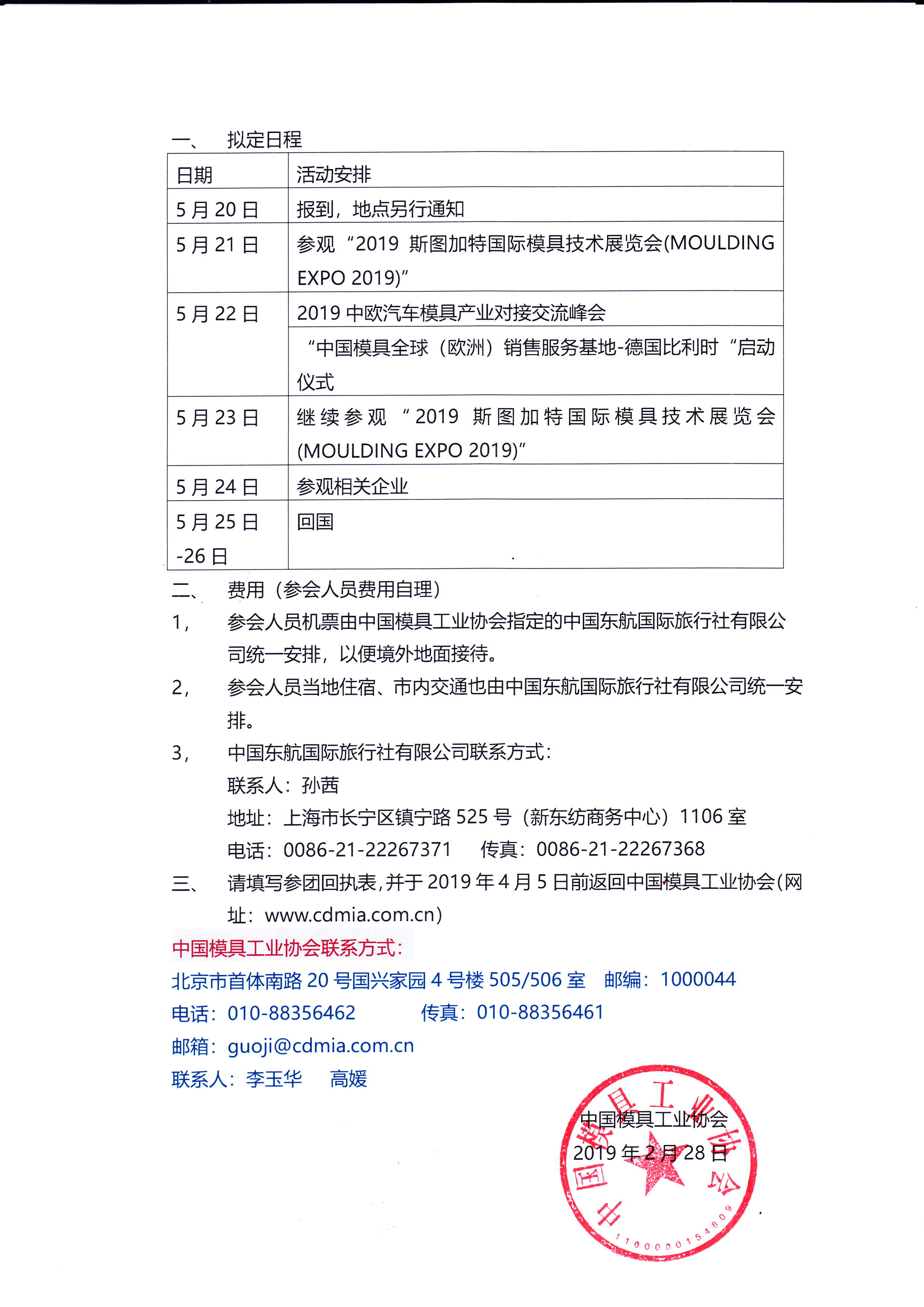 关于邀请参加2019年中欧汽车模具产业对接交流峰会的通知