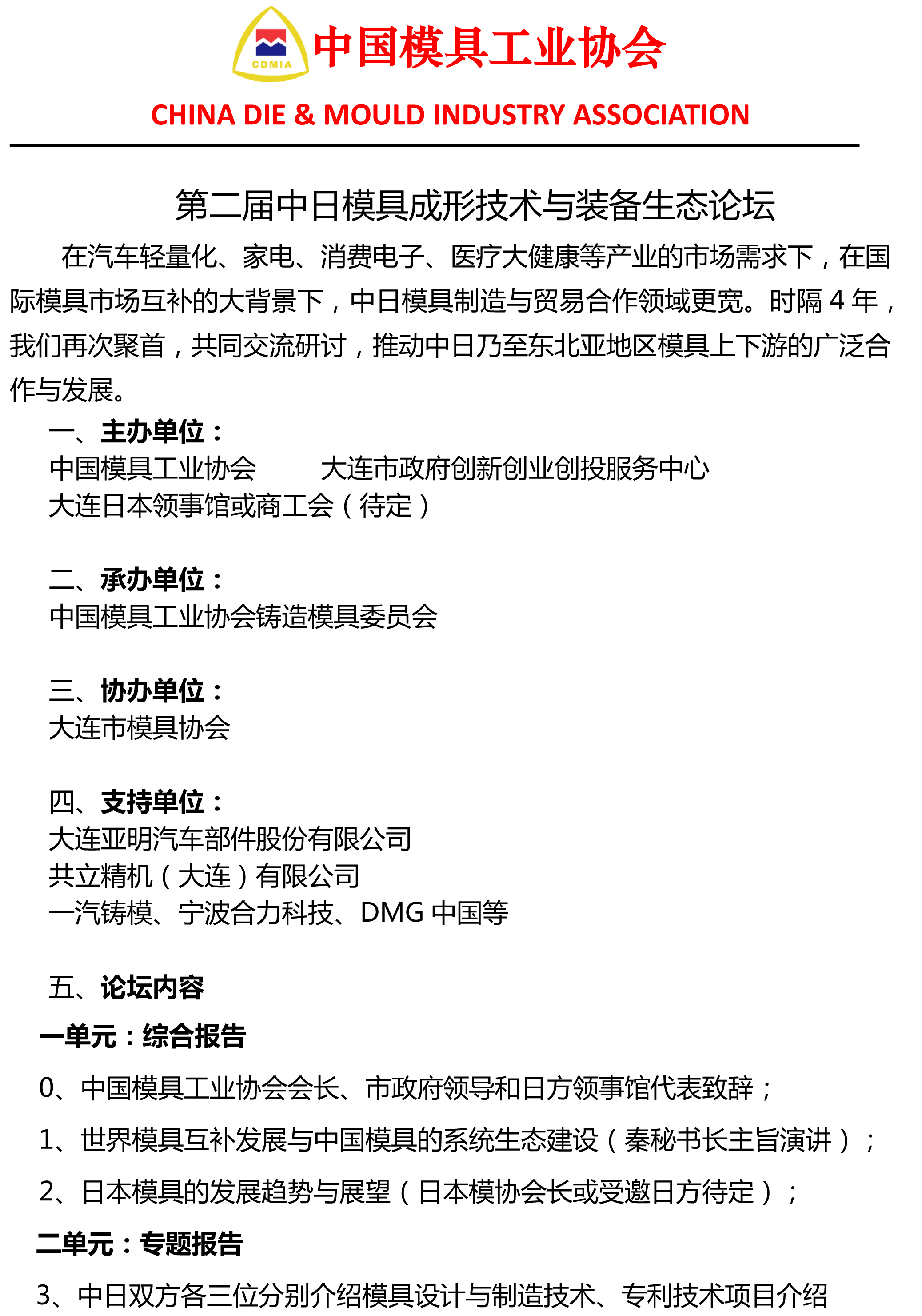 5月31日在大连第二届中日模具成形技术与装备生态论坛全面启动 |