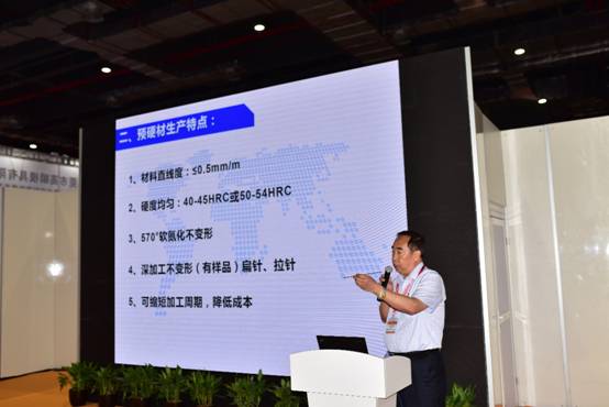 大连东非特钢制品有限公司总经理宁甲明作了“工模具钢预硬材的研发和应用”主题报告,他结合大连东非特钢的生产现状介绍了工模具钢预硬材产品的研发和应用。