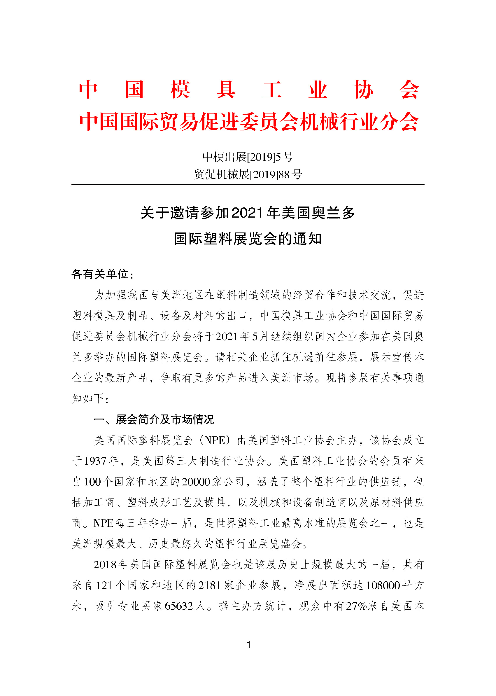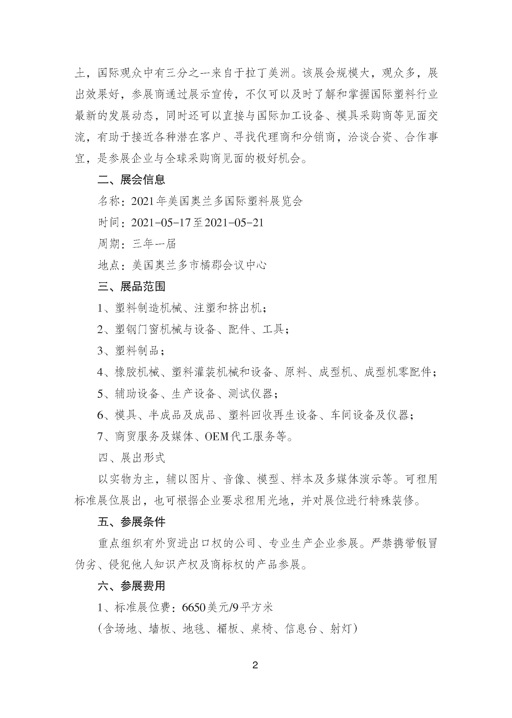 关于邀请参加2021年美国奥兰多国际塑料展览会的通知