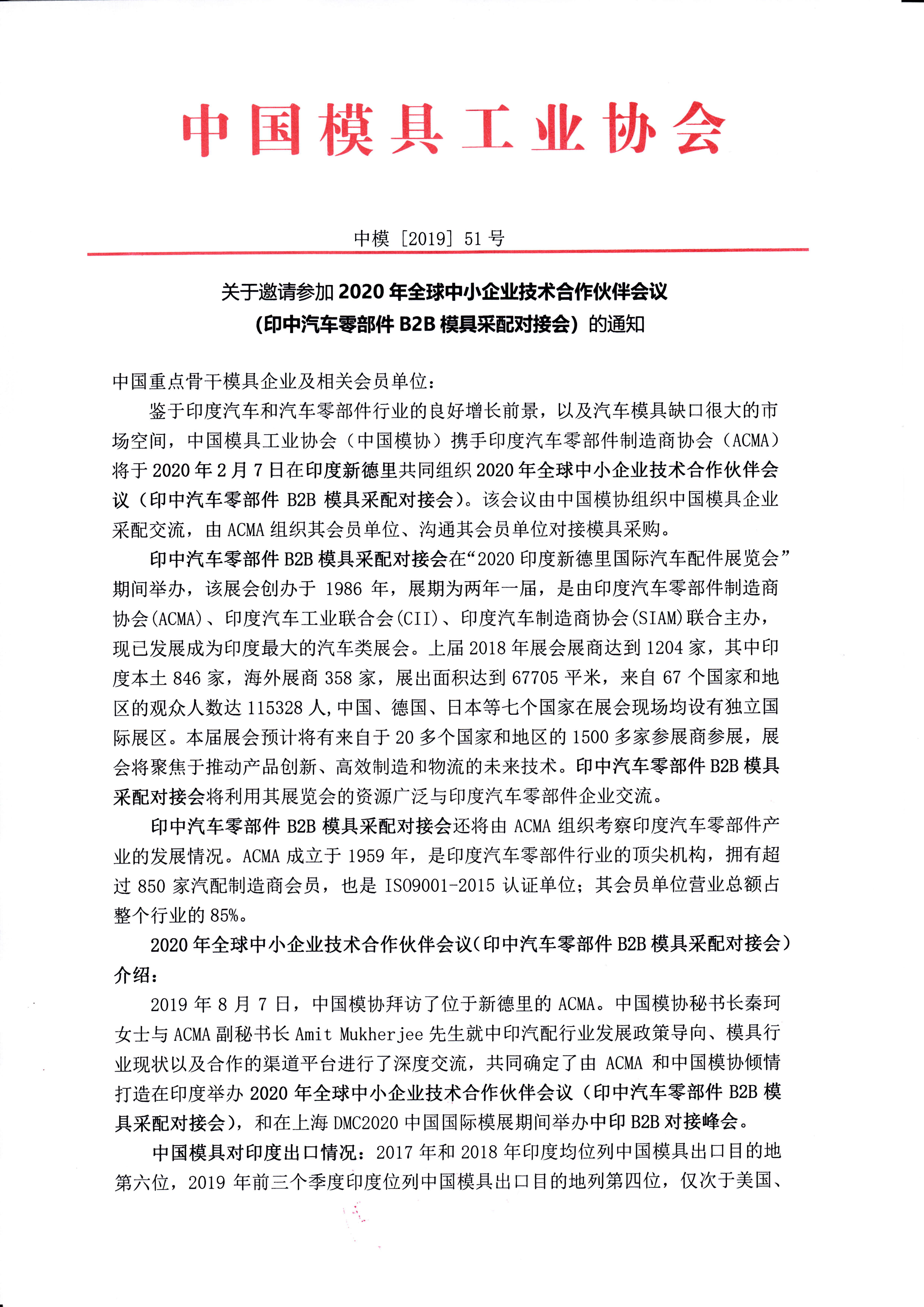 关于邀请参加2020年全球中小企业技术合作伙伴会议的通知