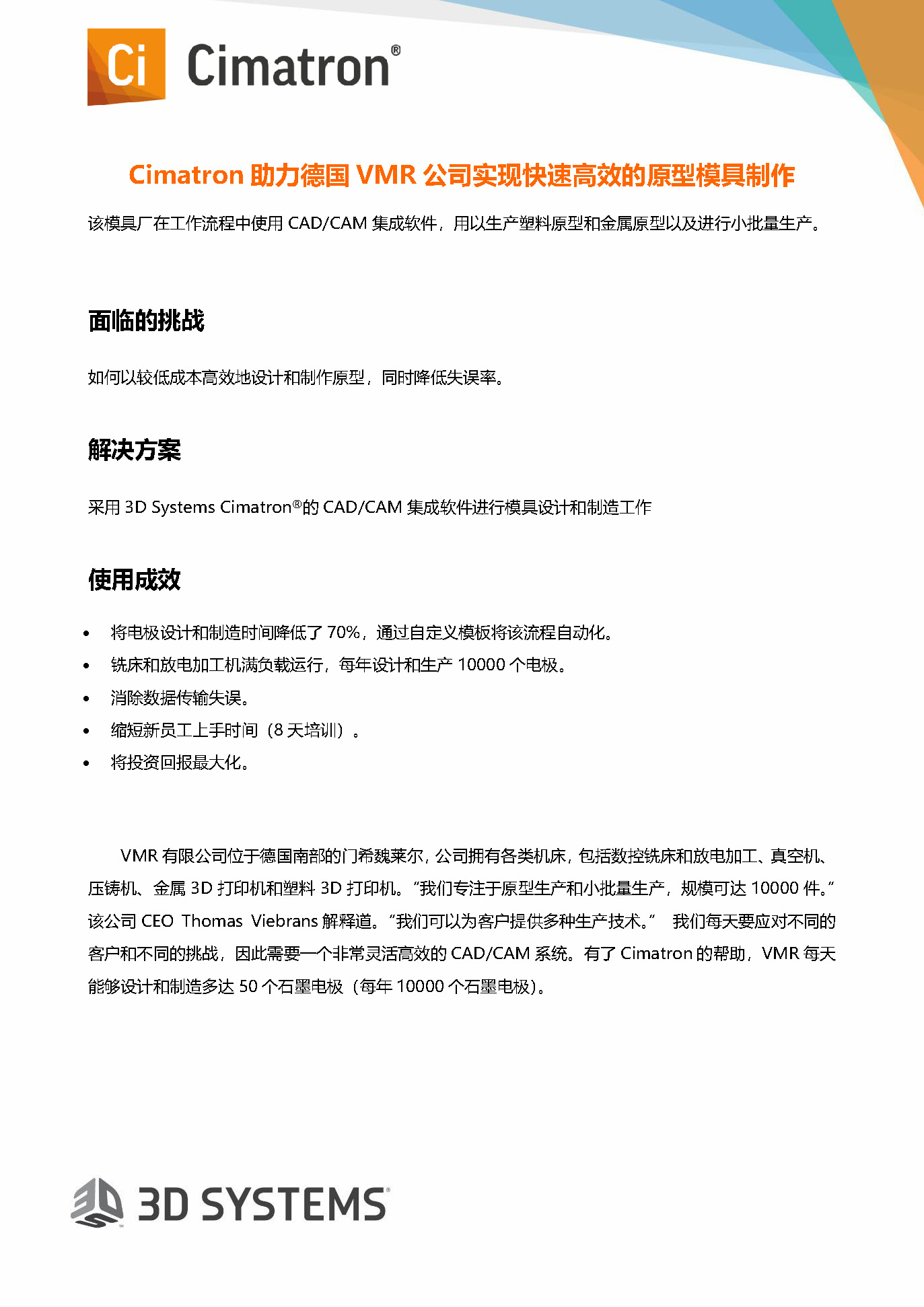 Cimatron助力德国VMR公司实现快速高效的原型模具制作