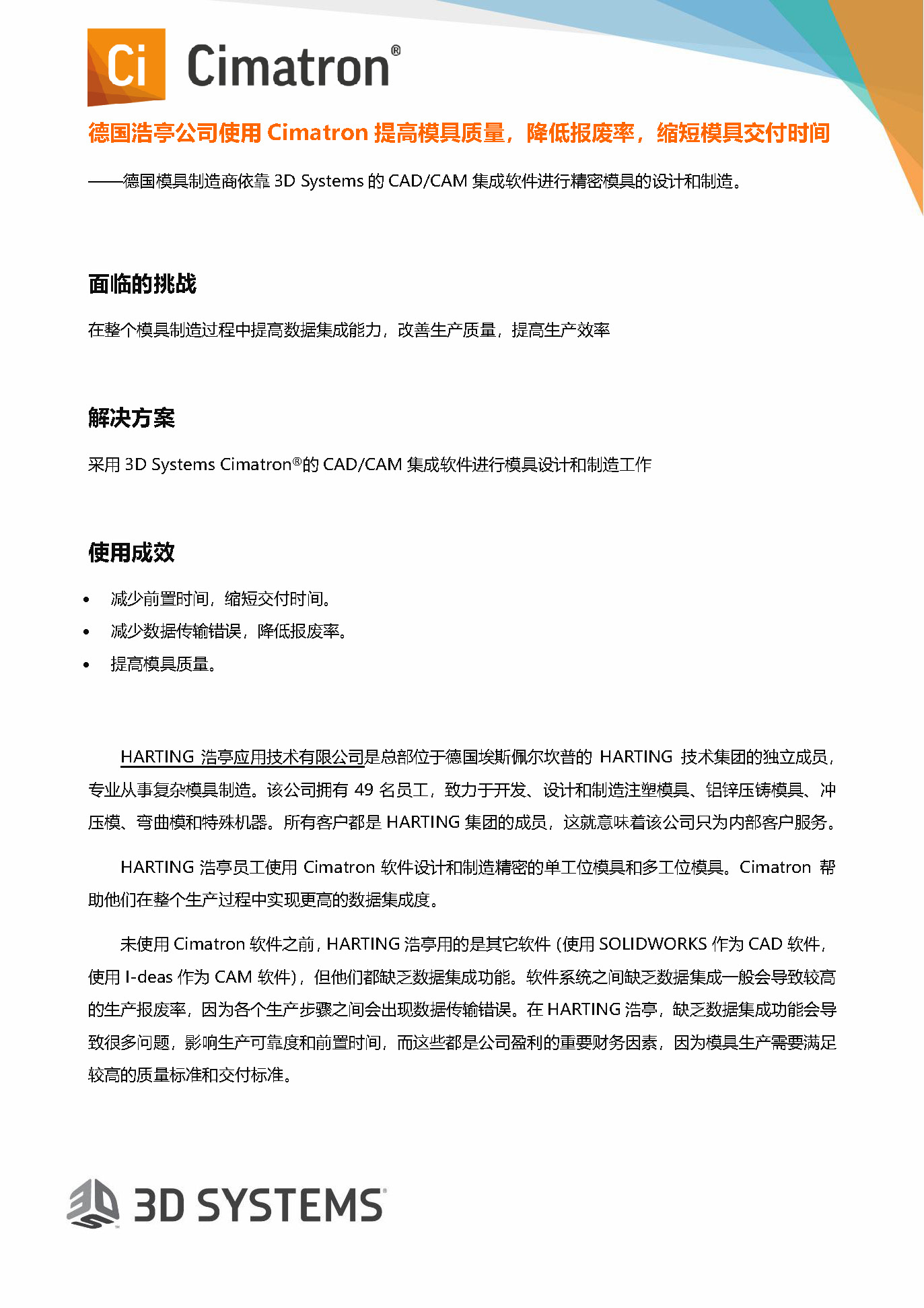 德国浩亭公司使用Cimatron提高模具质量,降低报废率,缩短模具交付时间
