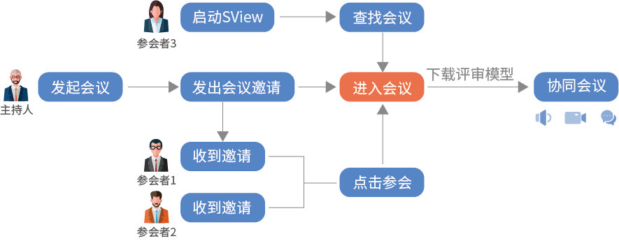 一个3D APP,一秒创建会议,一键快速分享,快速开会。SView协同设计评审解决方案支持参会者通过电脑、手机、Pad接入会议,大家基于产品3D模型与他人展开异地讨论,每人都可以操作模型,查看每个细节,在此过程中可以进行文本、语音、视频等方式的交流,高效地完成企业内外的设计协同 。
