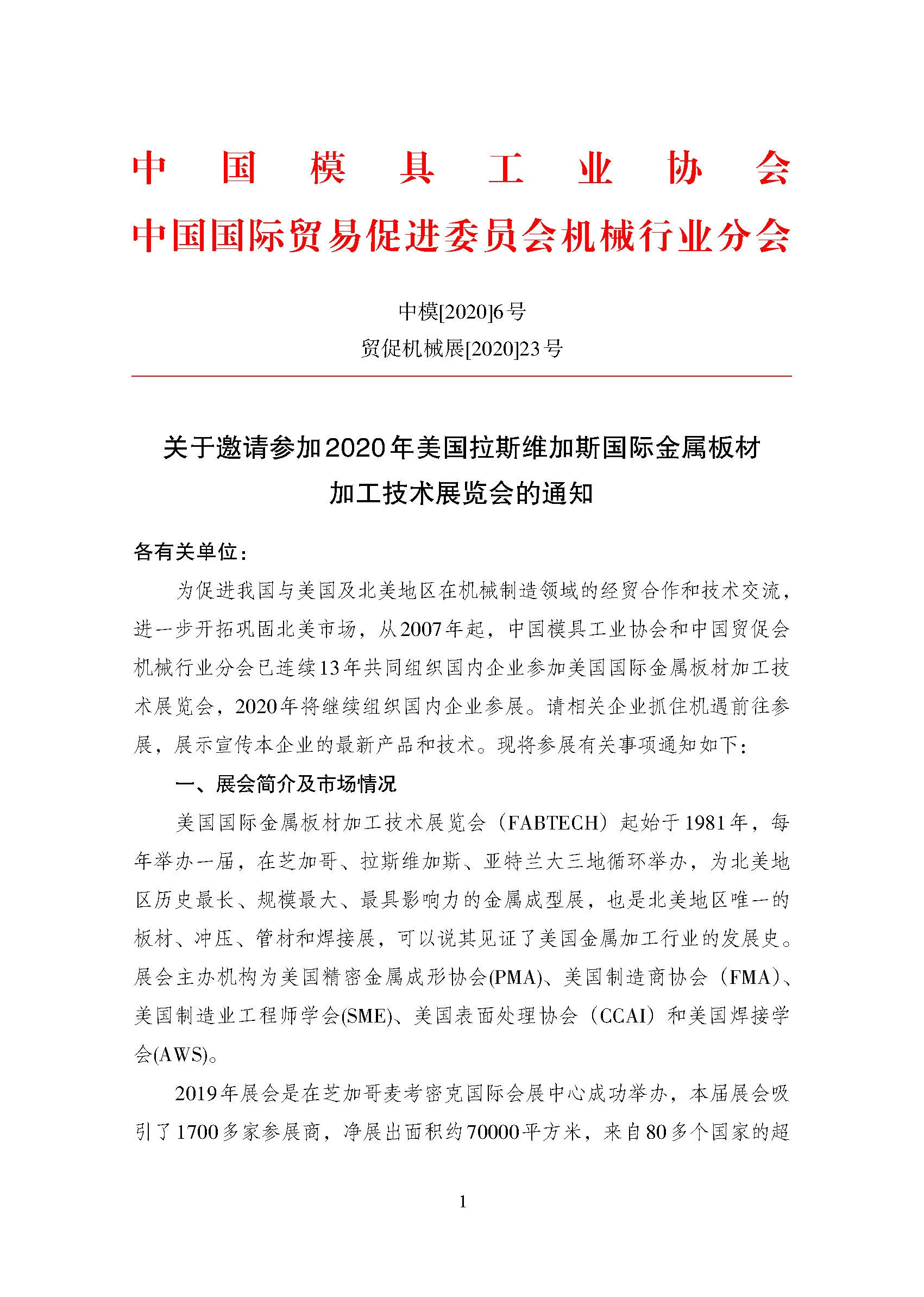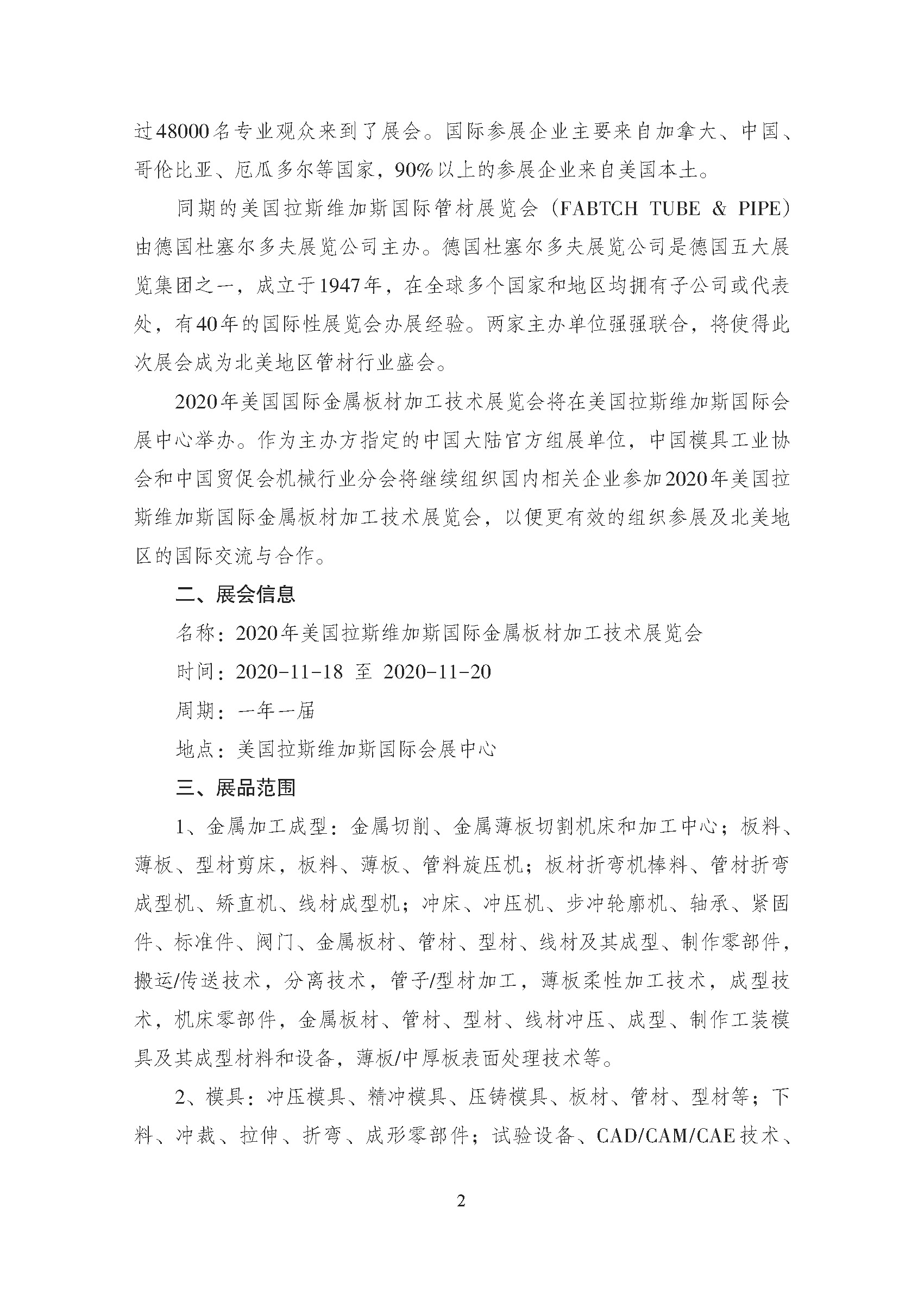 关于邀请参加2020年美国拉斯维加斯国际金属板材加工技术展览会的通知