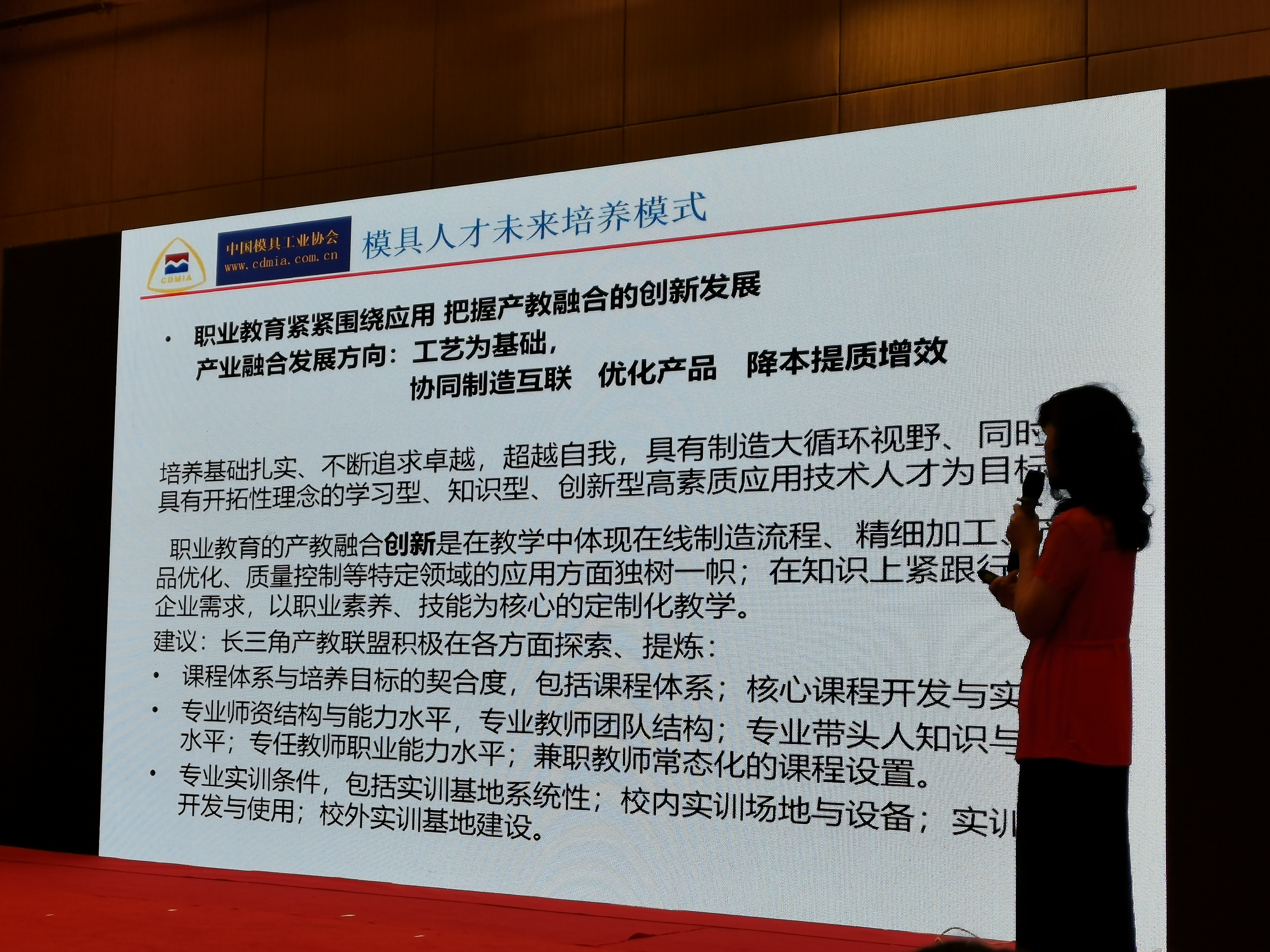 中国模协秦珂秘书长出席本次活动并在成立大会上致辞,她表示在现代化经济和产业体系中,企业已不再是单纯的产品生产者和服务提供者,更是技术创新和技能人才的重要需求者和孵化者。“长三角模具产教联盟”本着共育人才、共享资源、共促发展的理念,密切教育与行业与企业,形成校企“双元”育人、产教融合互惠的长效合作机制,助力全面接轨长三角模具关联资源新平台配置,不仅为打造具备国际影响力的高端模具产业集群提供人才建设新模式,也是推动新时代民营经济高质量发展区域经济的人才保障,更是强市、强业积极探索区域一体化创新发展的人才支撑。
