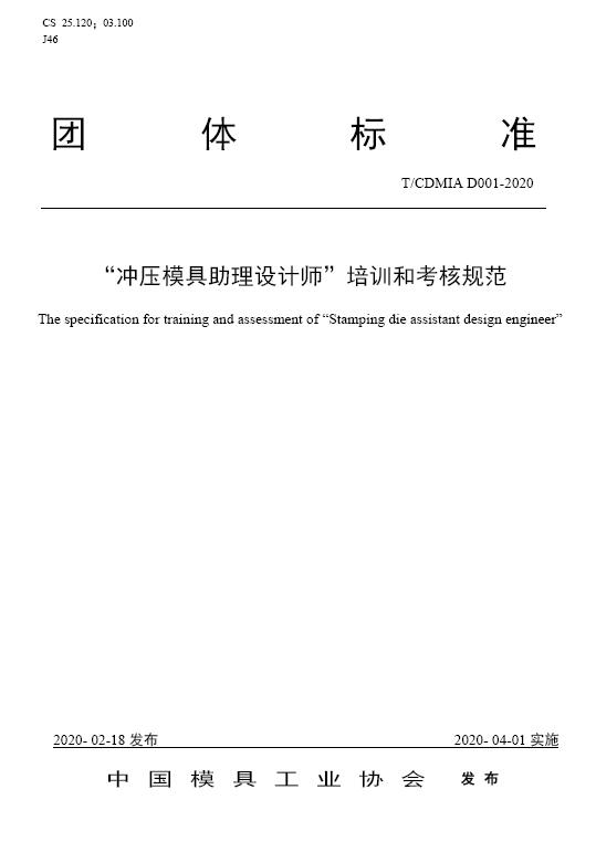 中国模协标准D001-冲压模具助理设计师培训和考核规范-2020
