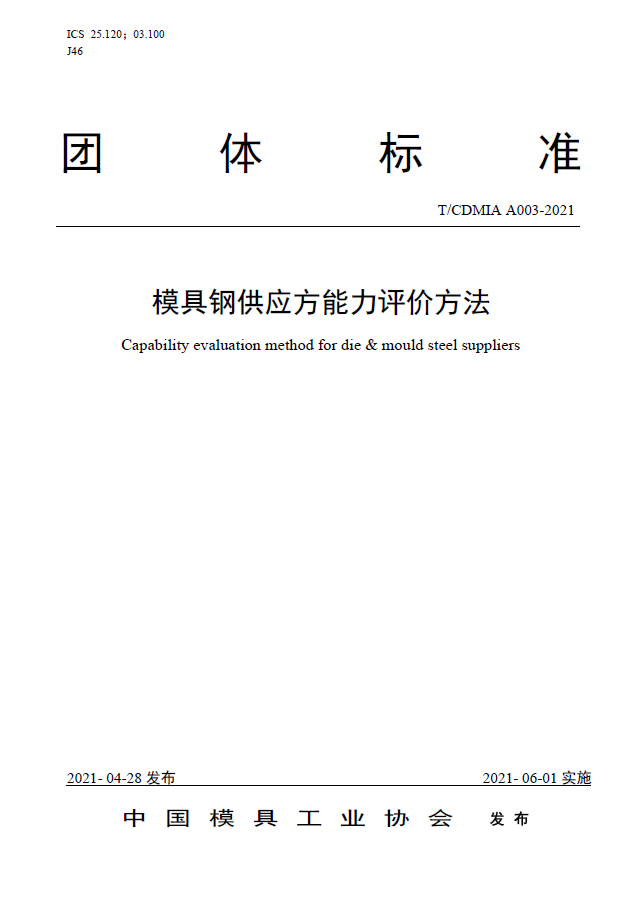 中国模协标准A003-模具钢供应方能力评价方法-2021