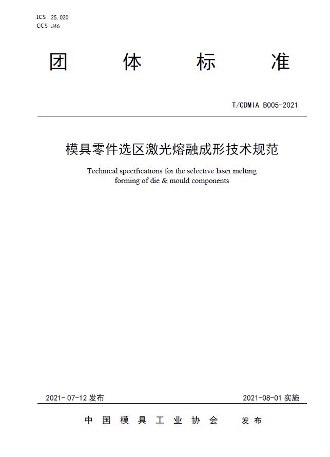 中国模协标准T/CDMIA B005-2021模具零件选区激光熔融成形技术规范