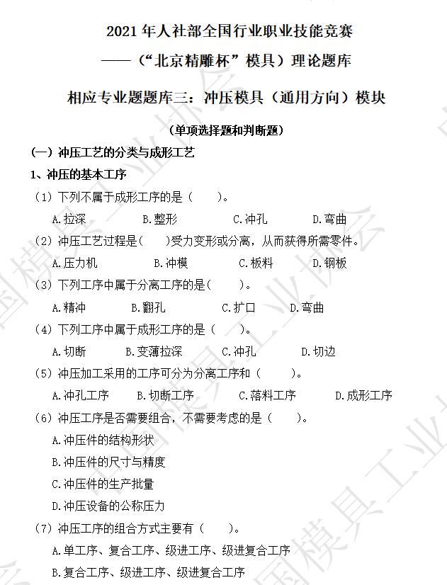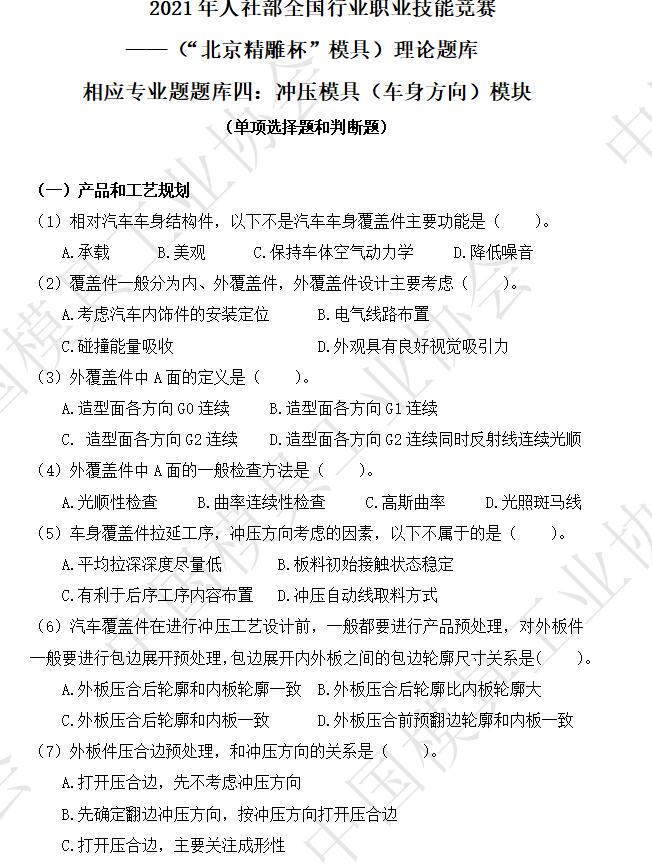 相应专业题题库:冲压模具(通用方向)模块、冲压模具(车身方向)模块