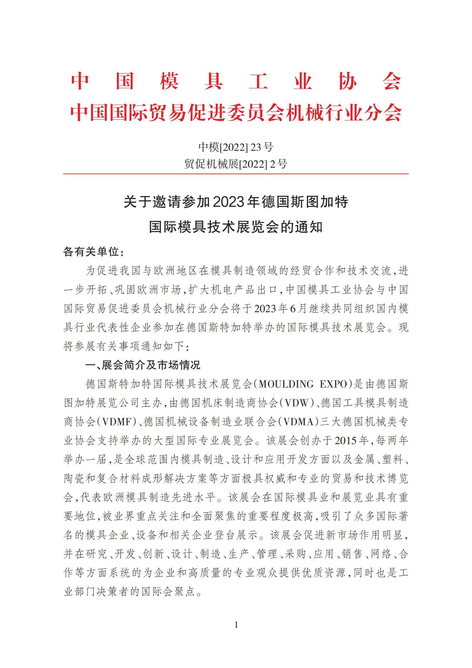 关于邀请参加2023年德国斯图加特国际模具技术展览会的通知