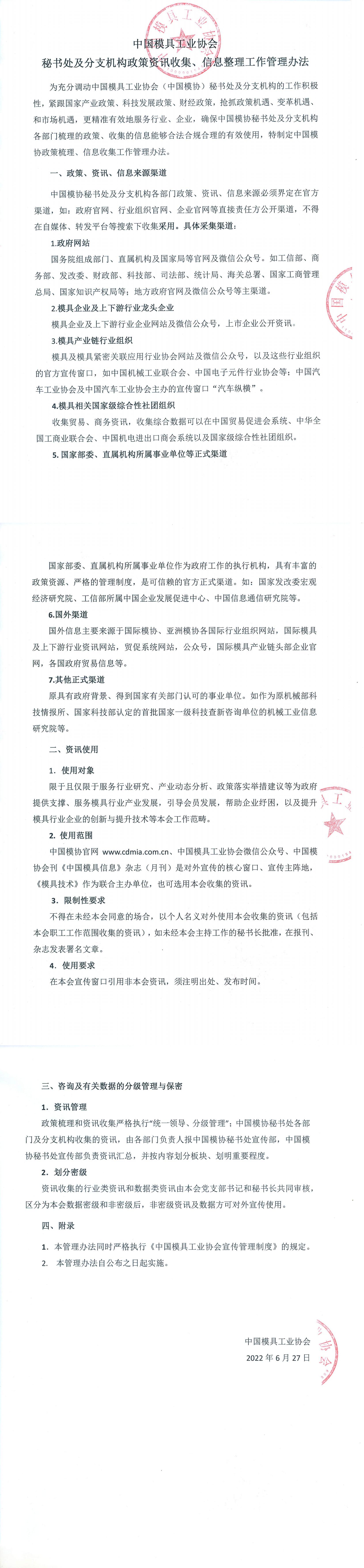中国模具工业协会秘书处及分支机构政策资讯收集、信息整理工作管理办法