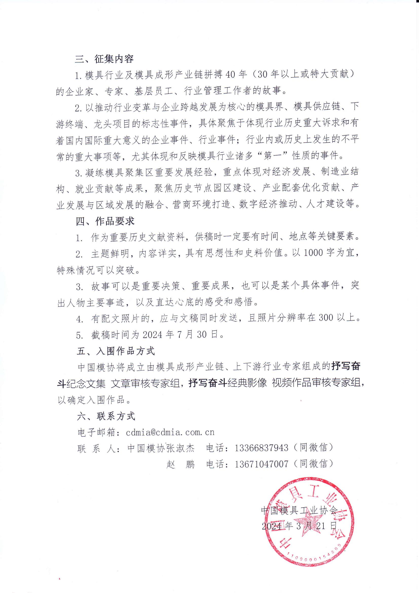 关于征集中国模具工业协会成立40周年文集 视频的函